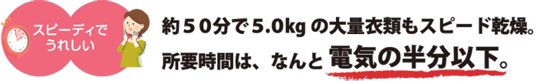 しかも電気式の半分以下の時間でスピーディに乾燥終了。