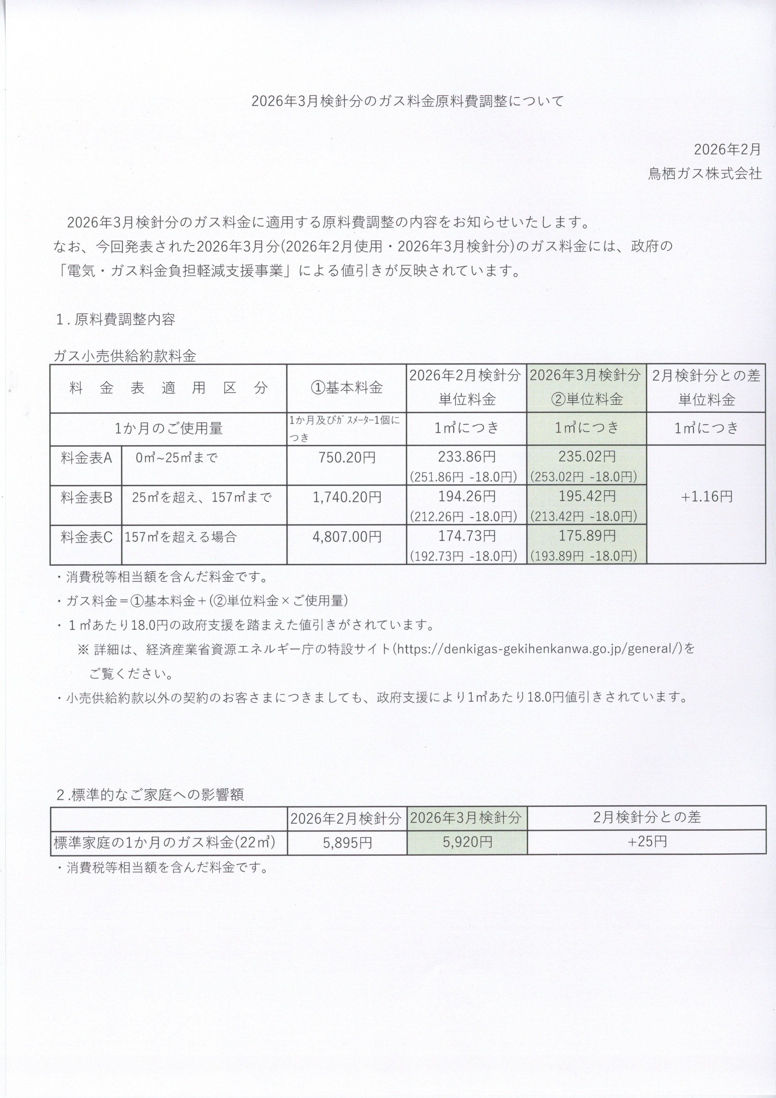 ガス料金のご案内