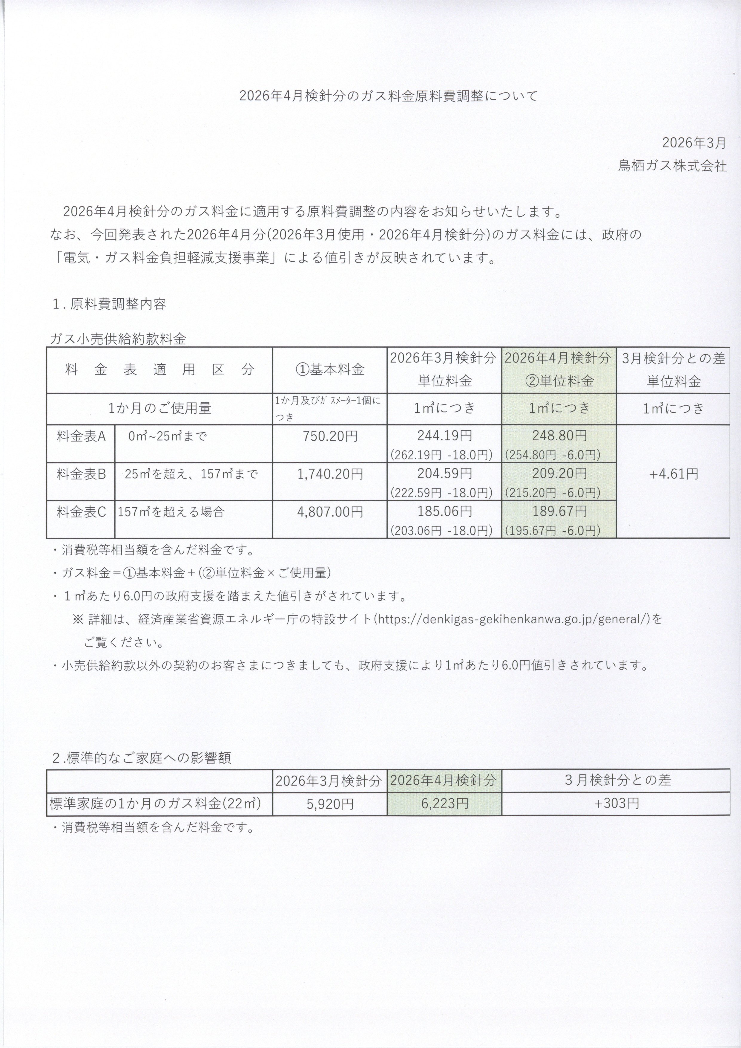 ガス料金のご案内